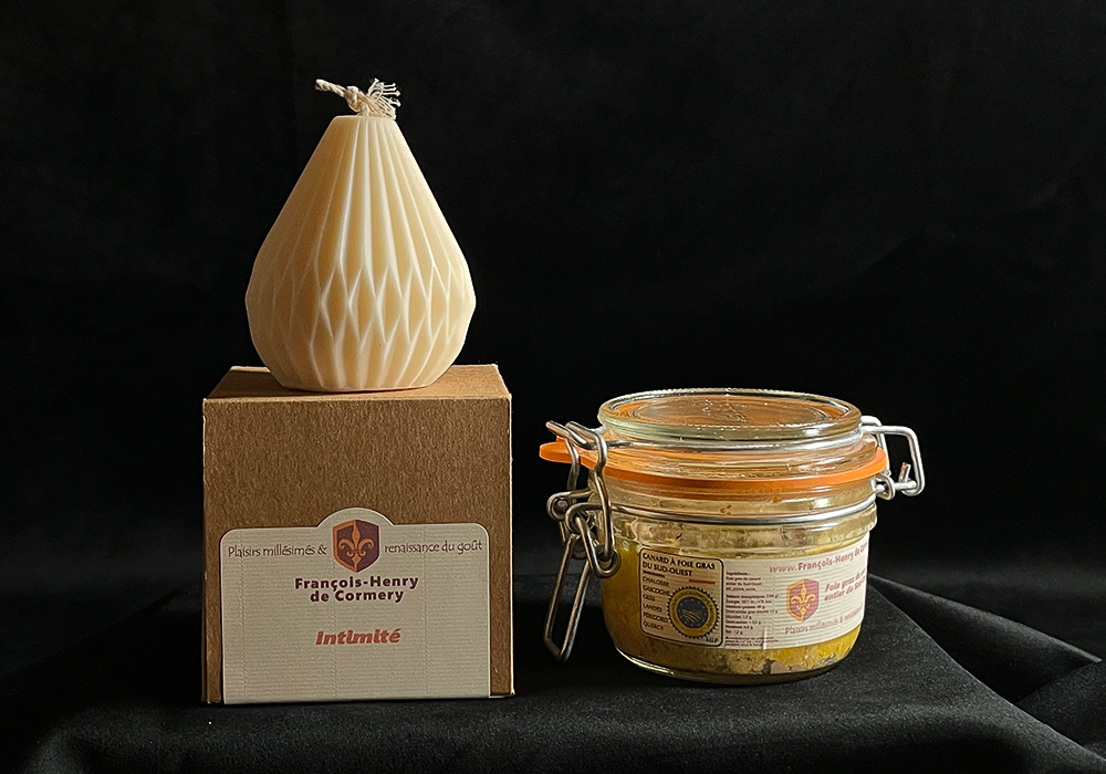 Un foie gras entier, élaboré avec des canards élevés dans le Gers. Finement salé et poivré, cuit “en papillote”, il offre une texture ferme en première bouche, avant de fondre sur la langue. Il libère alors onctuosité et fraicheur, caractéristiques des produits authentiques du terroir.
